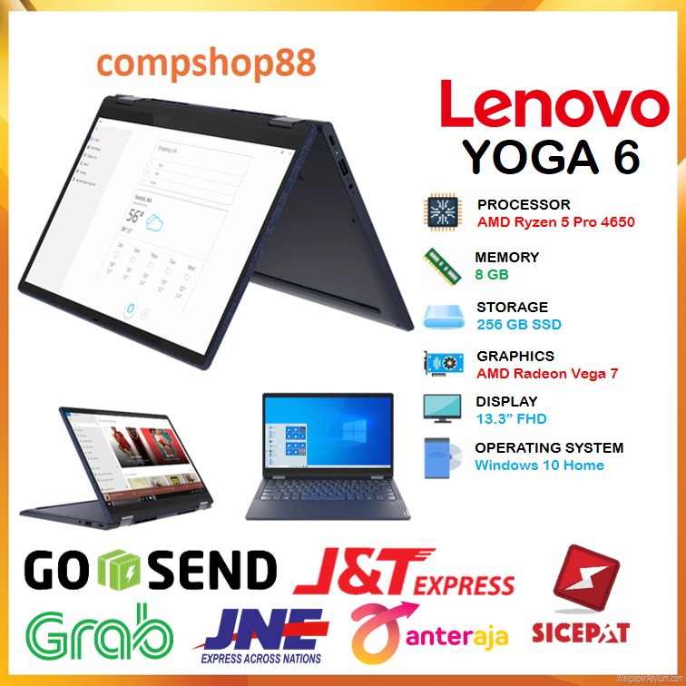 Laptop Flip Murah Lenovo Yoga 6 13 2in1 Touch Ryzen Pro 5 4650 8GB 256ssd Vega7 W10 13.3FHD